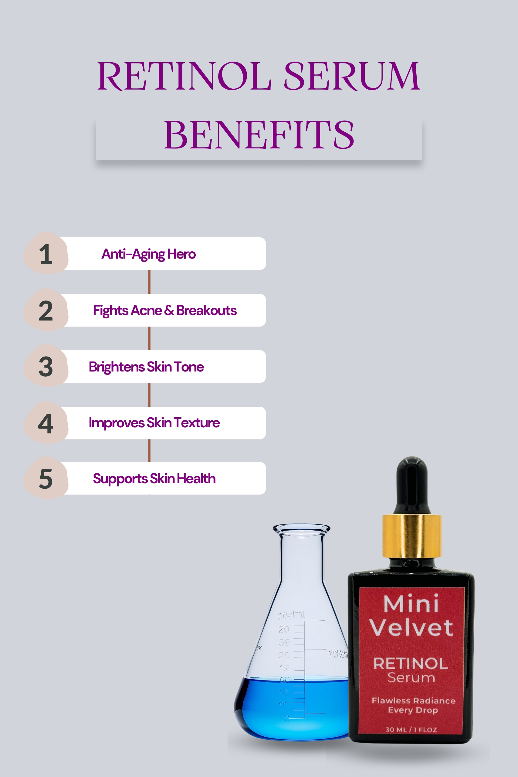“Mini Velvet Retinol Serum is the best anti-aging serum in Pakistan, expertly formulated to reduce wrinkles, fine lines, and dark spots. Similarly this powerful serum rejuvenates your skin with a blend of advanced ingredients, delivering a youthful, radiant glow that stands out across Pakistan.