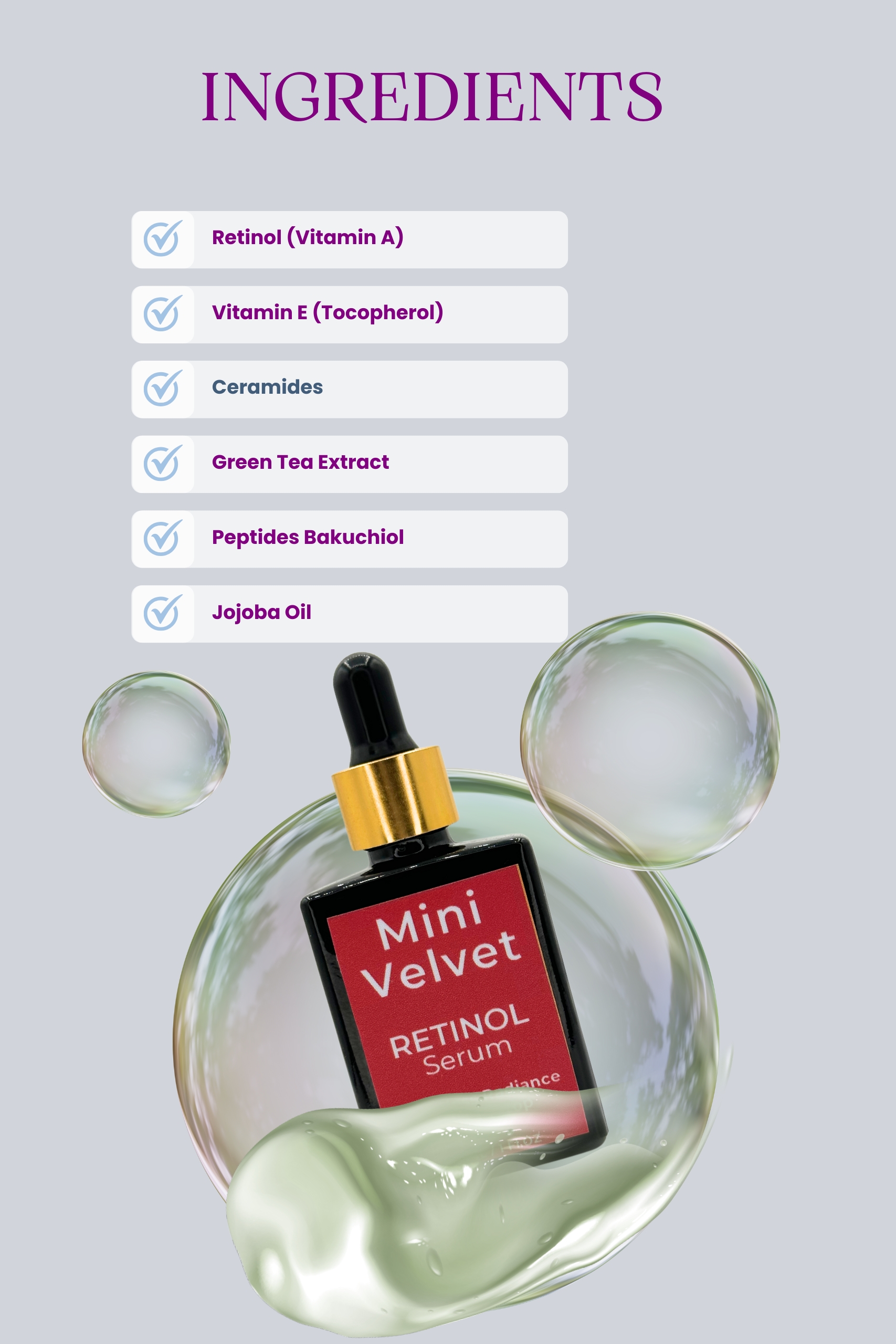 Mini Velvet Retinol Serum is the perfect solution for smooth, youthful, and radiant skin. With powerful anti-aging ingredients, this serum boosts collagen production, reduces fine lines, and hydrates deeply. Its lightweight, non-greasy formula absorbs quickly, leaving your skin soft, plump, and refreshed.